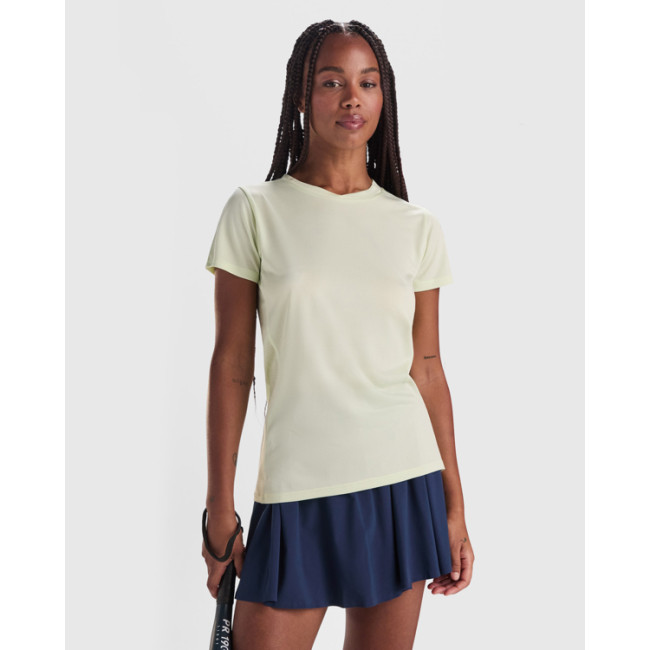 Maglietta tecnica donna leggera con colletto a incrocio e orlo arrotondato