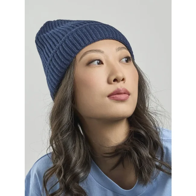 100% Polylana® . Berretto rifinito con risvolto a costine elegante, tascabile, fibre ottenute da bottiglie di plastica riciclate. Etichetta removibile.