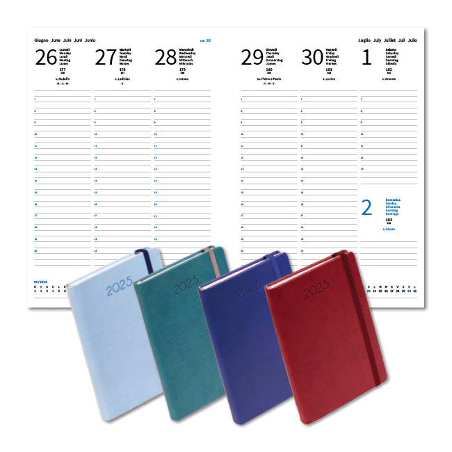 Agenda settimanale. Carta bianca certificata FSC da 80 gr, 128 pagine.