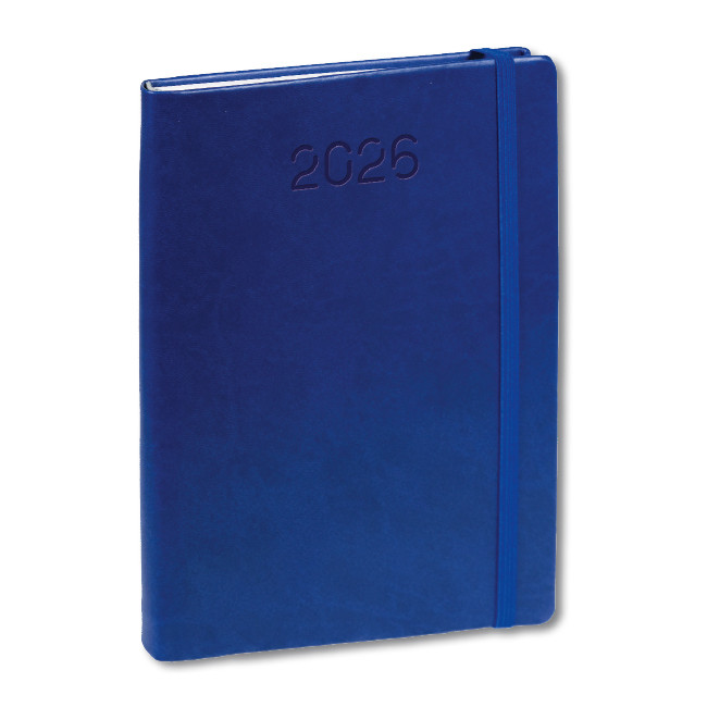 Grafica interna blu, grigio. Copertina risvoltata flessibile in vivella con angoli arrotondati in materiale termoscurente, dotata di elastico di chiusura.