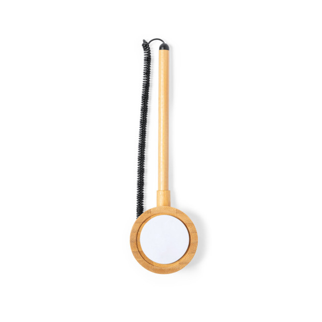 Penna della linea natura in bambù, con inchiostro blu e cordino estensibile. Include un supporto in bambù per la penna, con adesivo 3M alla base, fissaggio extra forte e senza residui quando viene staccato. Presentata in una scatola di design individuale in kraft.