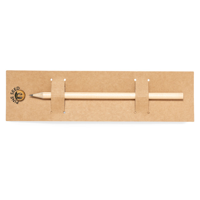 Matita cilindrica realizzata in morbido legno naturale, presentata in un astuccio di cartone riciclato. Include una capsula di semi di pino, rendendo questo prodotto non solo utile ma anche ecologico. Il cartone proviene dal riutilizzo di eccedenze di produzione e dal riciclo della carta a fine vita, rappresentando una scelta sostenibile per chi ama l'ambiente.