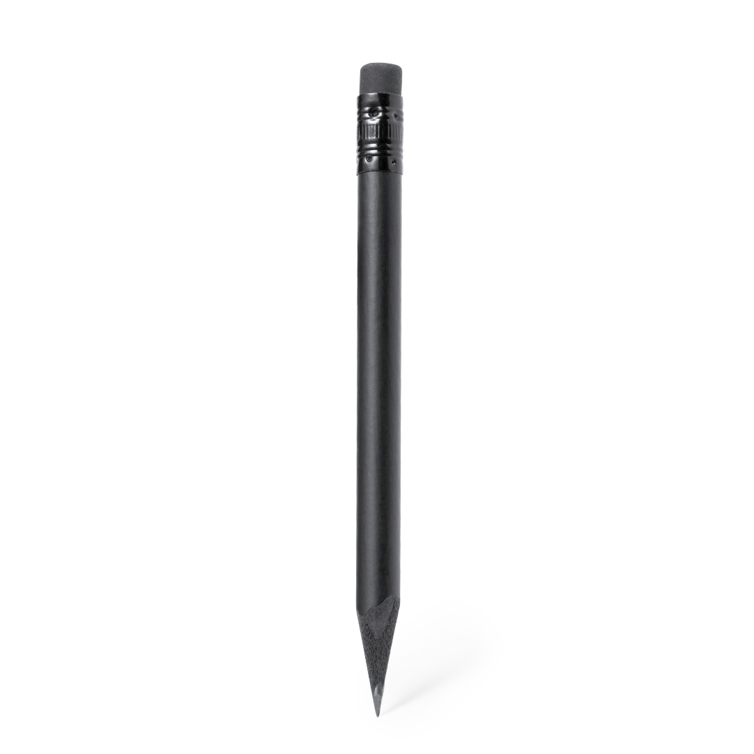 Matita in legno naturale con finitura nera opaca. Caratterizzata da mina nera e punta affilata, questa matita è un'ottima scelta per chi cerca un design elegante e sostenibile. La gomma coordinata completa il prodotto, rendendolo pratico e funzionale.