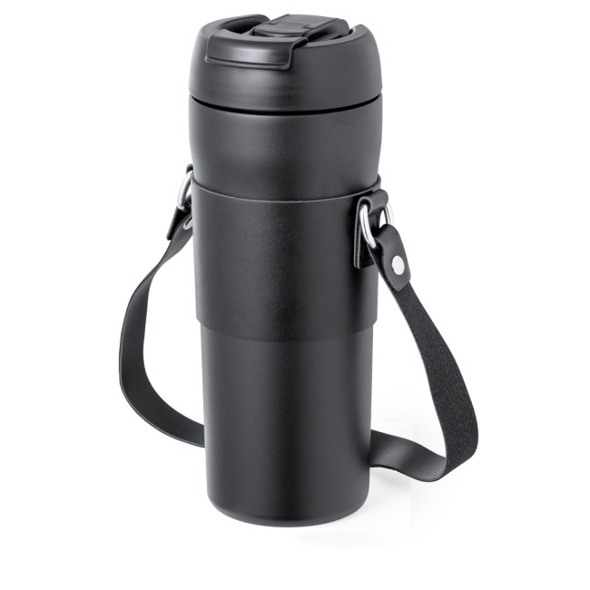 Elegante borraccia termica da 700 ml, realizzata in acciaio inox a doppia parete. Tappo a vite originale con dispenser nel coperchio e beccuccio per cannuccia inclusi. Con maniglia per il trasporto e impugnatura in similpelle abbinata. Presentata in una scatola di design kraft individuale.