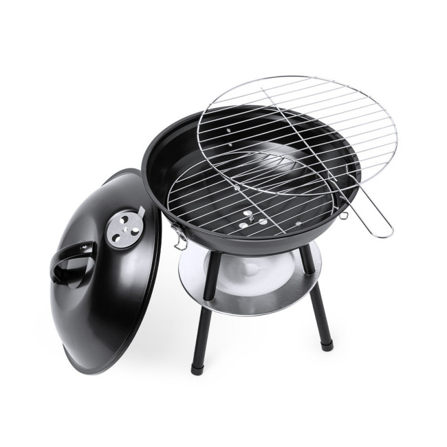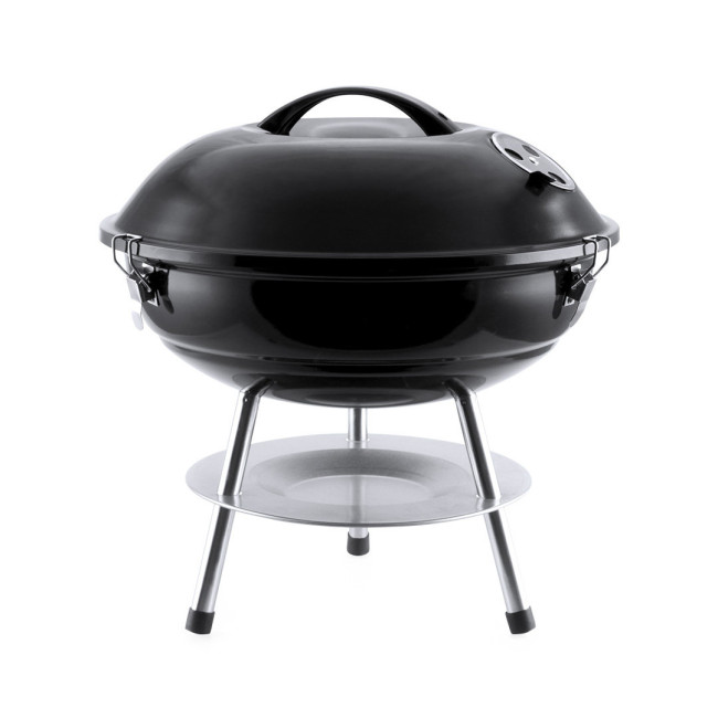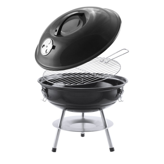 Barbecue realizzato in robusto acciaio al carbonio con finitura nera. Coperchio con comoda maniglia e fori di ventilazione, con griglia in metallo, vassoio raccogli gocce e piedini antiscivolo. Confezionato in un'attraente scatola di design.