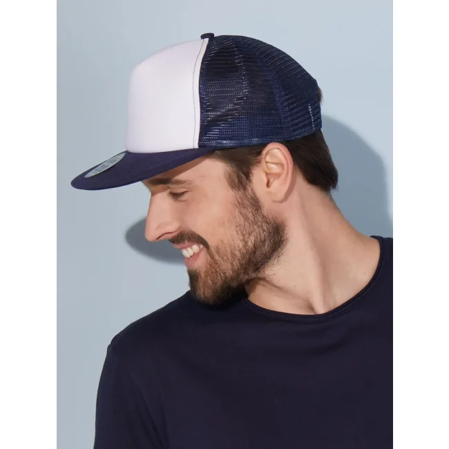 100% poliestere. 6 cuciture decorative sulla visiera, fascia interna tergisudore imbottita in cotone, adesivo rimovibile sulla visiera, chiusura "Click & snap" per aggiustare la taglia
