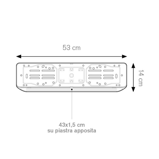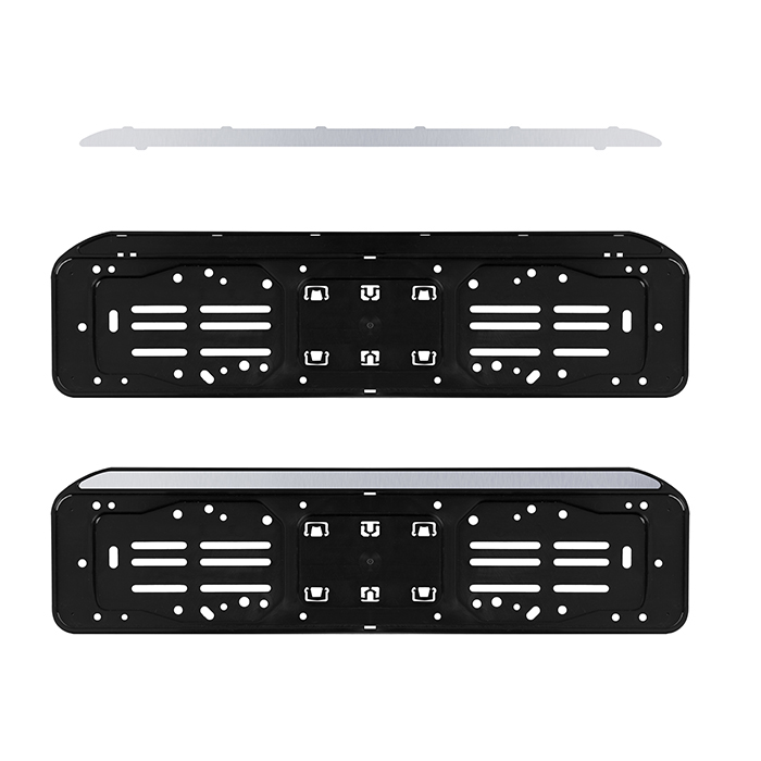 portatarga posteriore auto con listello montaggio con bottoni fermatarga inclusi listello di colore argento fornito smontato tecnica di stampa consigliata: serigrafica - UV