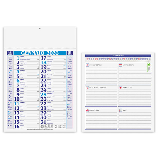 calendario: cm 30x42,5 ca testata: cm 30x9 ca