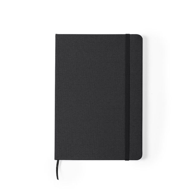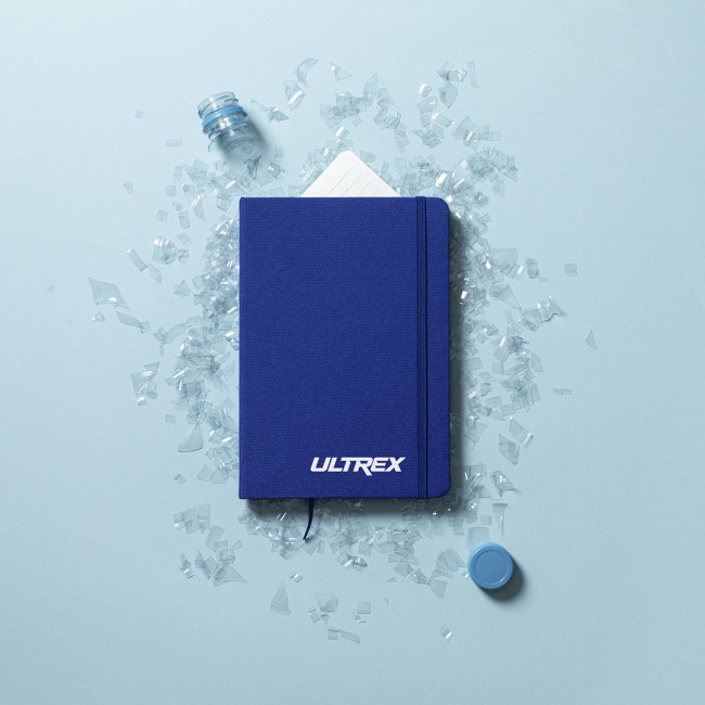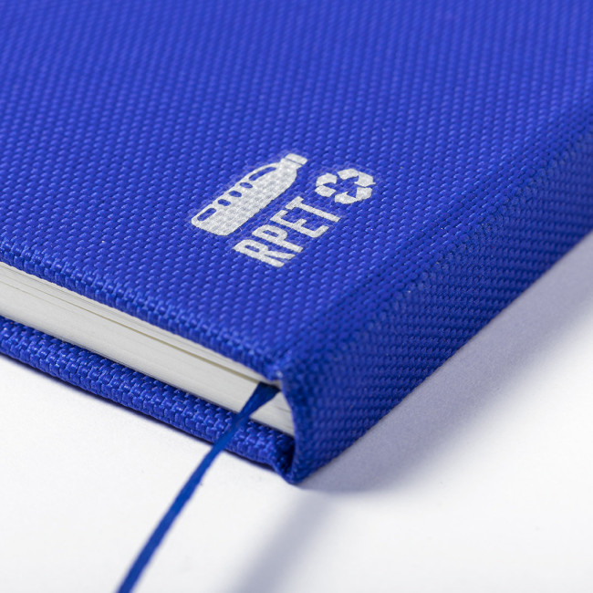 Notebook della linea Natura con copertina rigida in 600D RPET, realizzato in plastica riciclata per favorire il riutilizzo dei rifiuti plastici e contribuire alla sostenibilità del pianeta. Disponibile in un'ampia gamma di colori, composto da 80 fogli a righe. Con elastico e segnalibrio in tessuto coordinato. Distintivo RPET sul retro