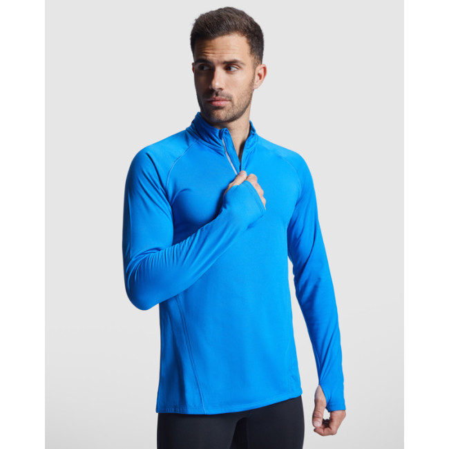 Maglia tecnica manica lunga raglan per uomo.1. Interno felpato.2. Copri cuciture rinforzate a contrasto all'interno del collo.3. Mezza cerniera invertita in tinta con dettagli riflettenti,4. Polsini con apertura per il pollice.5. La parte posteriore è leggermente più lunga della parte anteriore.6. Dettagli riflettenti sulle spalle.