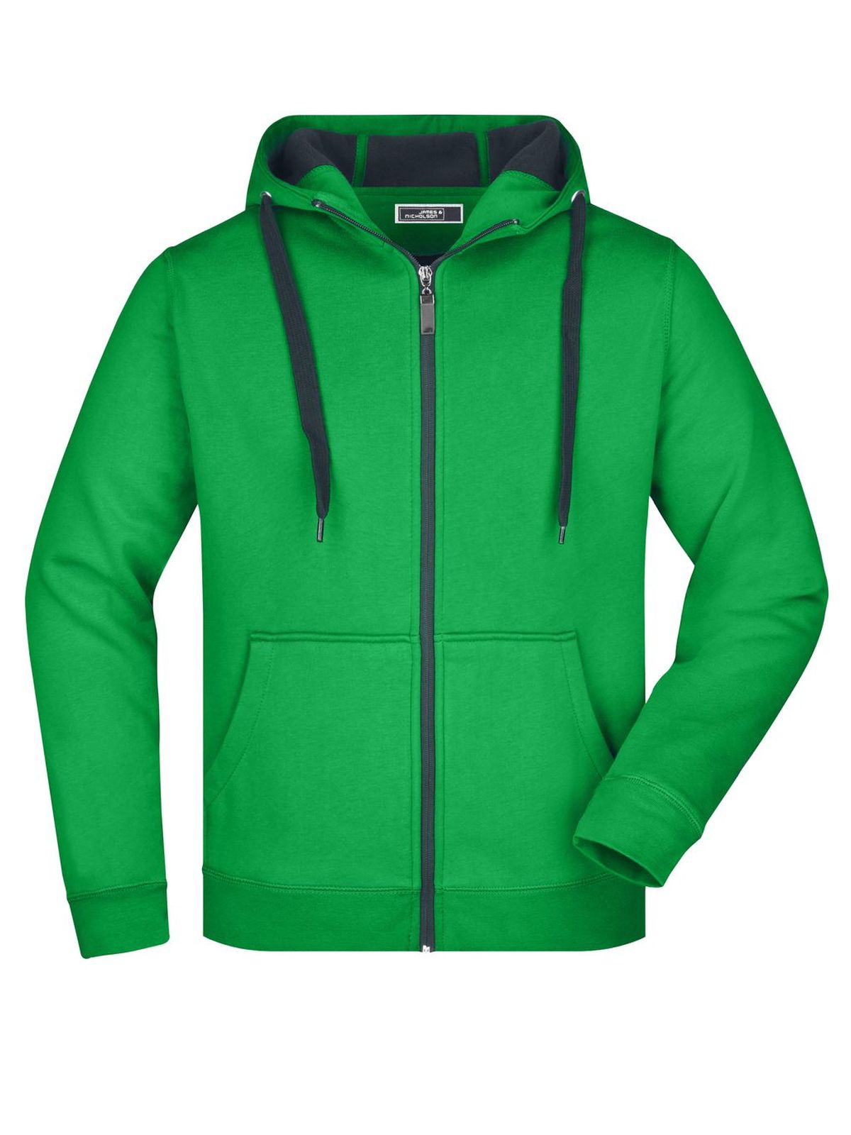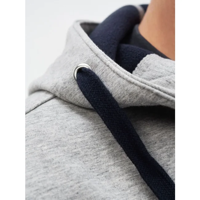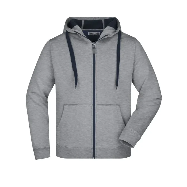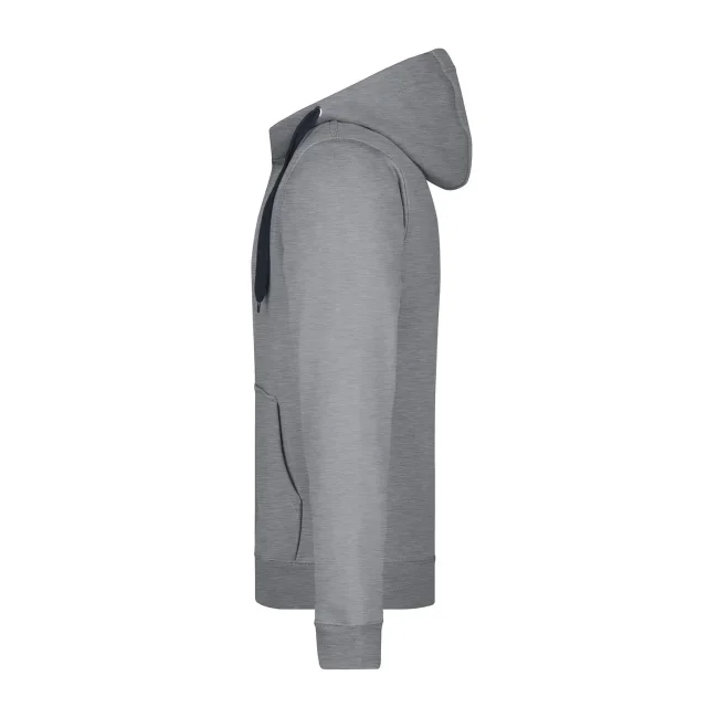55% poliestere, 45% cotone. Felpa sportiva con maniche set-in. Zip intera, parte interna del cappuccio, parte interna della felpa e cordoncini di colore contrastante, felpata internamente, orlo inferiore e polsini in elastane, tasca a marsupio, struttura con cuciture laterali.