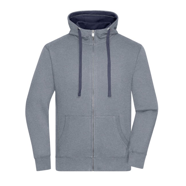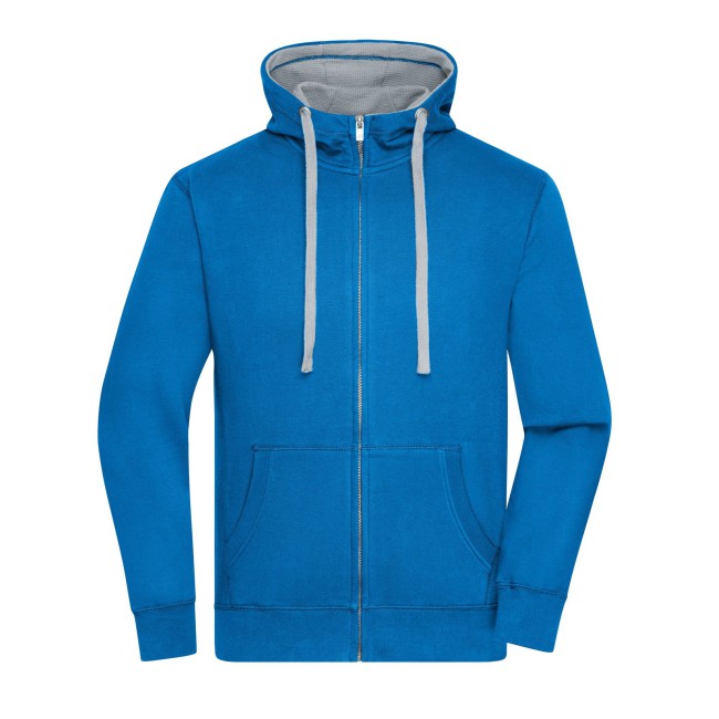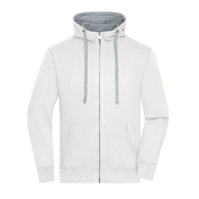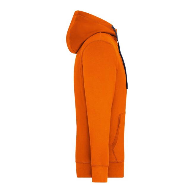 80% cotone, 20% poliestere. Giacca in felpa cappuccio e zip Alta qualità, tessuto in felpa morbido, Polsini con elastan. Cuciture piatte in tinta, 2 strati di cappuccio all'interno e cordino in colore contrastante, Tasca Kangoo, taglio morbido. Tessuto esterno (280 g/m²). Felpata internamente.