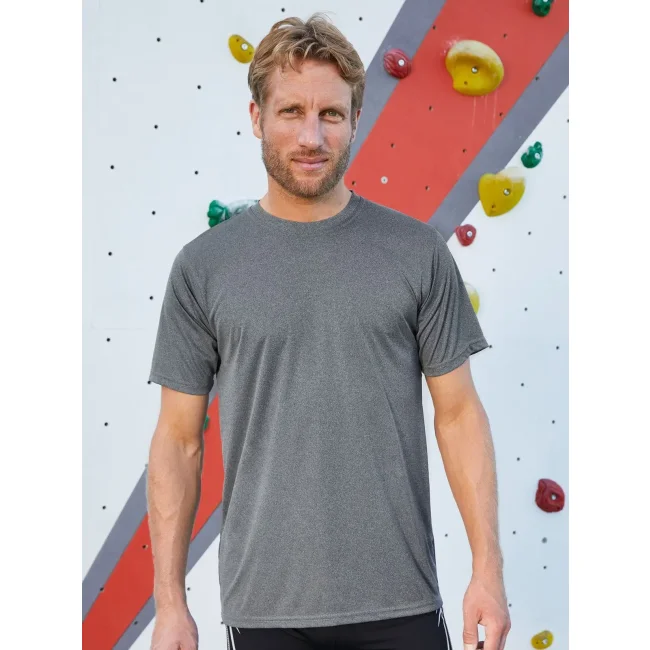 100% poliestere. T-shirt per il tempo libero e lo sport. Fine single jersey, forma diritta, necktape, cuciture a doppio ago sulle spalle, collo e maniche, Traspirante, regola l'umidità, ad asciugatura rapida. Tessuto esterno (150 g/m²). Manica corta, collo rotondo.