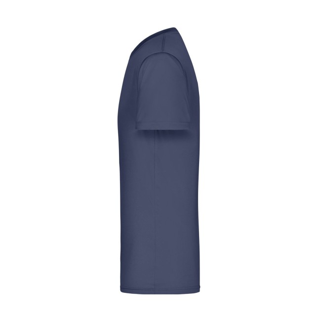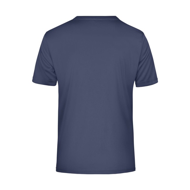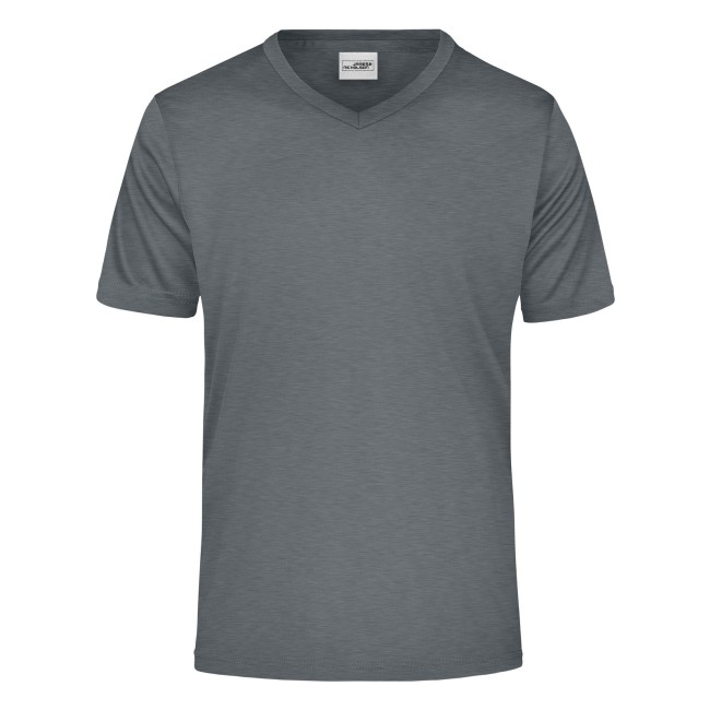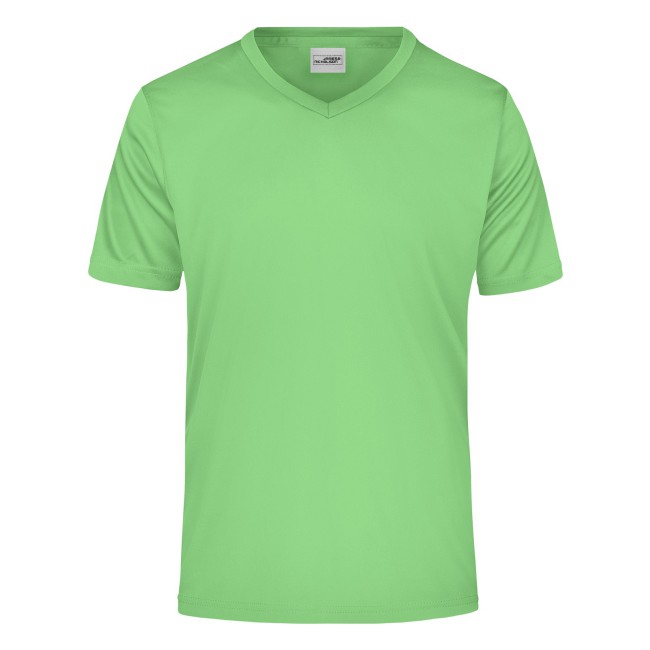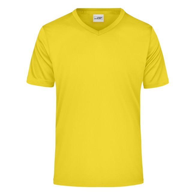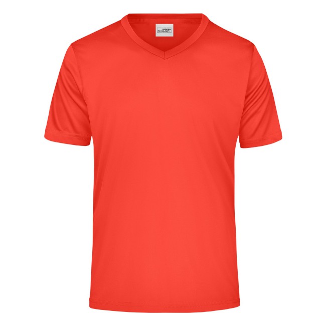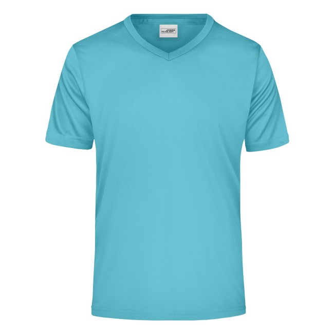 100% poliestere. T-shirt per il tempo libero e sport Single jersey, Scollo a V , parasudore, Cuciture doppie sulle spalle e sul giro manica, Traspirante , autoregolazione dell'umidità, Asciugatura rapida. Tear off!®-etichetta removibile. Tessuto esterno (150 g/m²), manica corta.