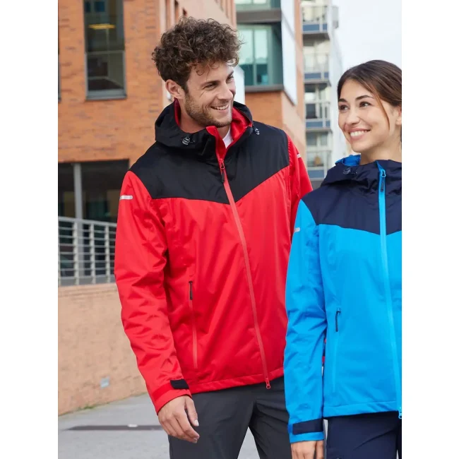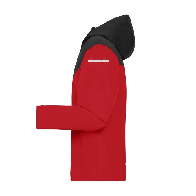 100% poliestere riciclato. Giacca softshell 2 strati, foderata in poliestere riciclato con membrana TPU, antivento e antipioggia (10,000 mm colonna d'acqua), traspirante e permeabile al vapore (5,000/m²/24 h). Cuciture nastrate, cerniere waterproof, zip nascosta bidirezionale con protezione per il mento, due tasche laterali, una tasca interna, cappuccio regolabile, polsini regolabili con velcro, vestibilità ergonomica, retro esteso, dettagli riflettenti sulle maniche e nella parte posteriore, zip decorativa sul retro.