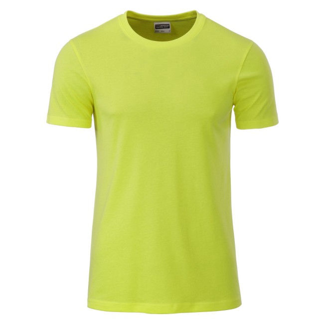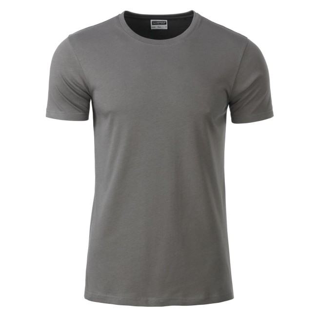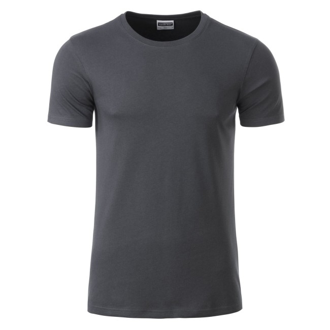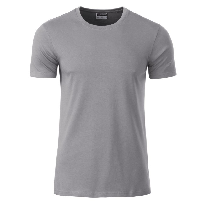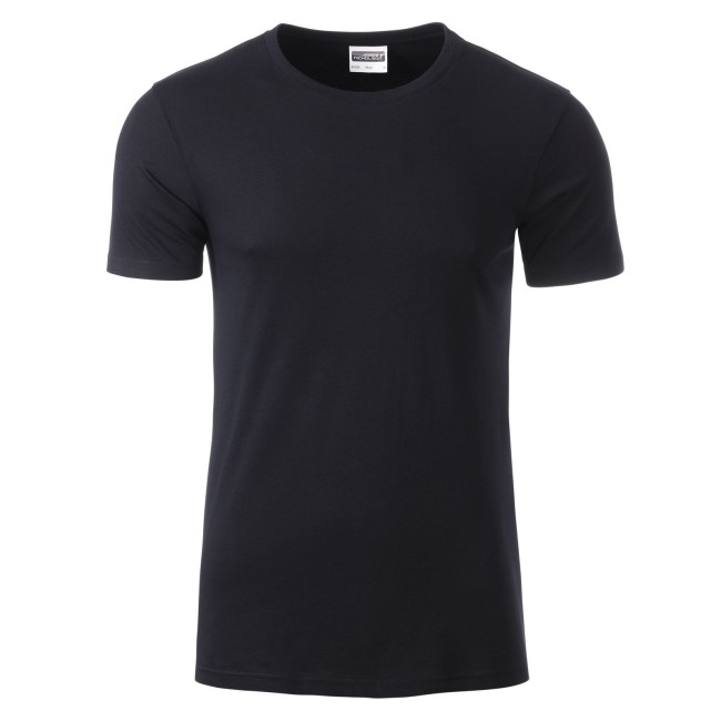 100% cotone organico. single jersey. T-shirt girocollo classica con elastane, etichetta strappabile, struttura con cuciture laterali.