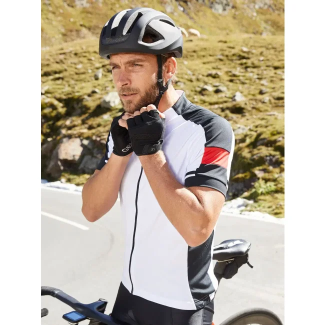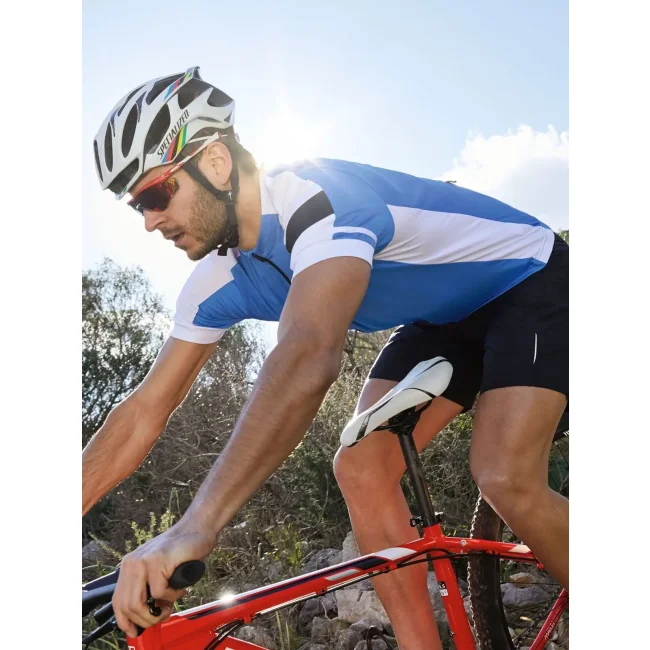 100% poliestere. Maglia da ciclismo sportiva zip lunga Traspirante, regola l'umidità , ad asciugatura rapida, leggera e confortevole, Doppia cerniera bloccabile coperta con protezione per il mento, Parte posteriore ergonomicamente allungata con elastico antiscivolo, Inserti a contrasto. Tasca posteriore con chiusura lampo con serratura. Tessuto esterno (150 g/m²)