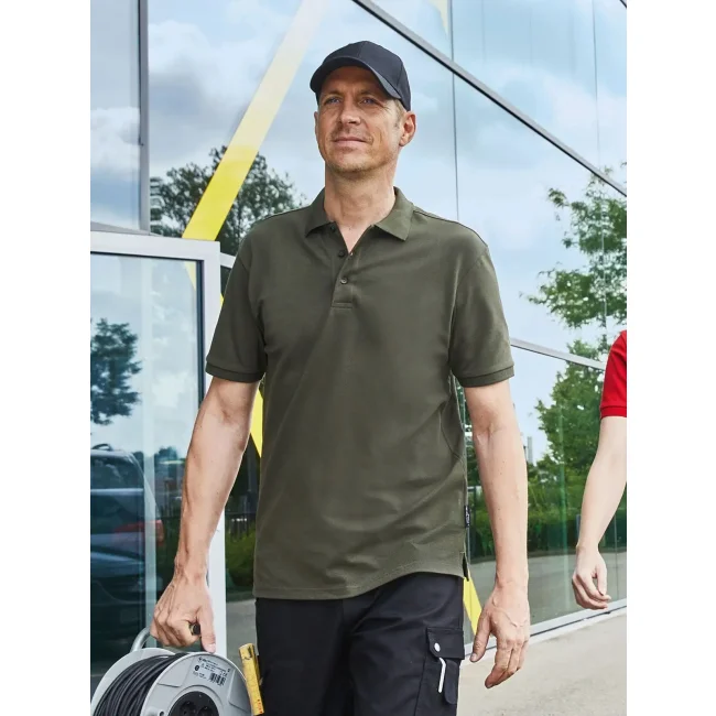 94% cotone 6% elastan. Polo cotone organico ring- spun, colletto polo e bordini manica lavorati a maglia, chiusura a 3 bottoni, spacchetti laterali, lavabile a 40° C, ideale per asciugatura in asciugatrice.