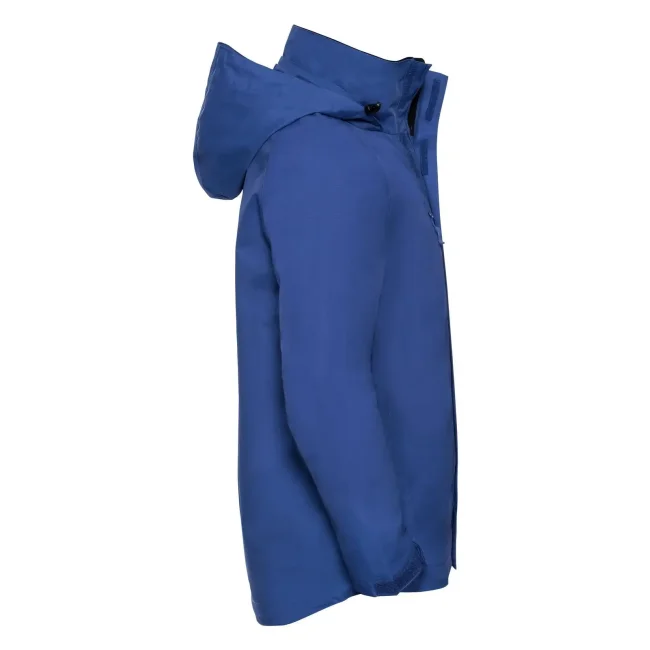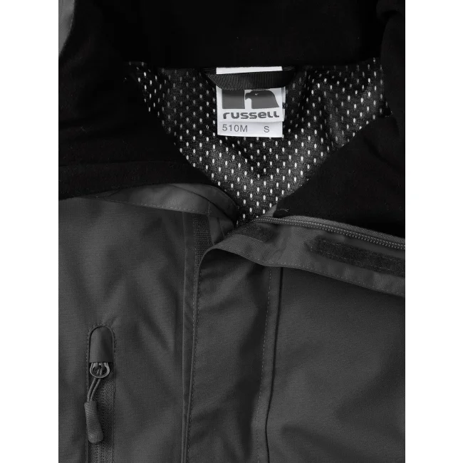 100% nylon Taslan. Giacca impermeabile con maniche raglan, cerniera frontale nascosta, tasche con cerniera, tasca interna, cappuccio a 3 strati richiudibile e colletto interno in micropile, polsini regolabili, rivestimento interno in maglia per un comfort e traspirabilità superiori. Lavabile a 30°C (non usare ammorbidente).