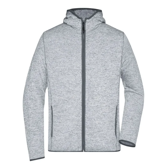 100% poliestere. Giacca con cappuccio in maglia in pile melange Tessuto morbido, caldo e facile da stirare. All'esterno appare come lavorato a maglia, all'interno soffice e morbido, Sottili cuciture divisorie, Cappuccio, Polsini a contrasto, 2 tasche sul davanti.