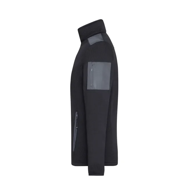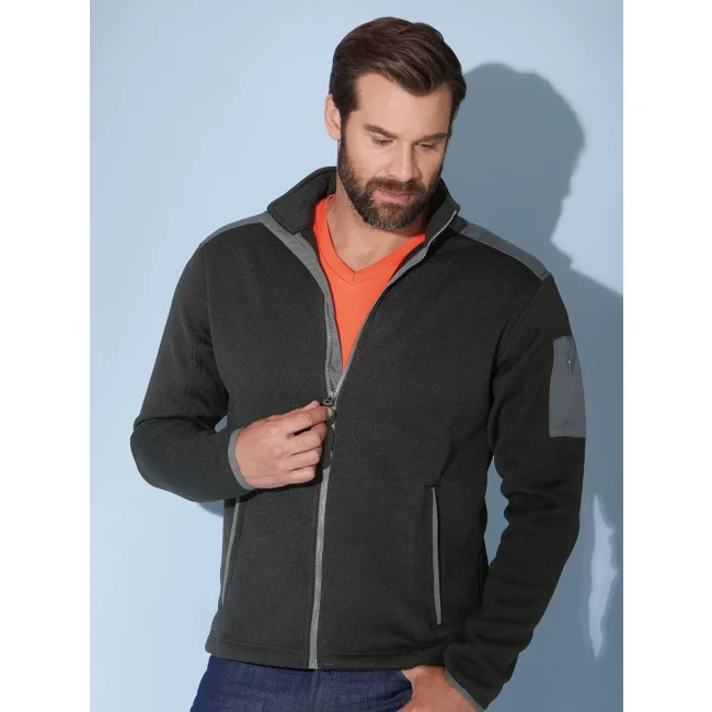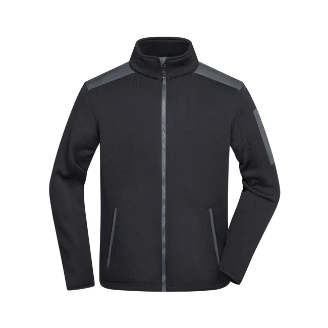 100% poliestere. Giacca in maglia in pile molto soffice e caldo Tessuto liscio e di facile manutenzione. All'esterno appare come lavorato a maglia, all'interno è molto soffice e morbido. Lungo zip frontale ricoperta con protezione per il mento, Colletto rigido, Passamaneria in tessuto sulle spalle, Tasca con zip sulla manica in tessuto , 2 tasche con zip davanti. Tessuto esterno (320 g/m²). Colletto alla coreana.