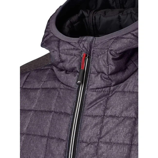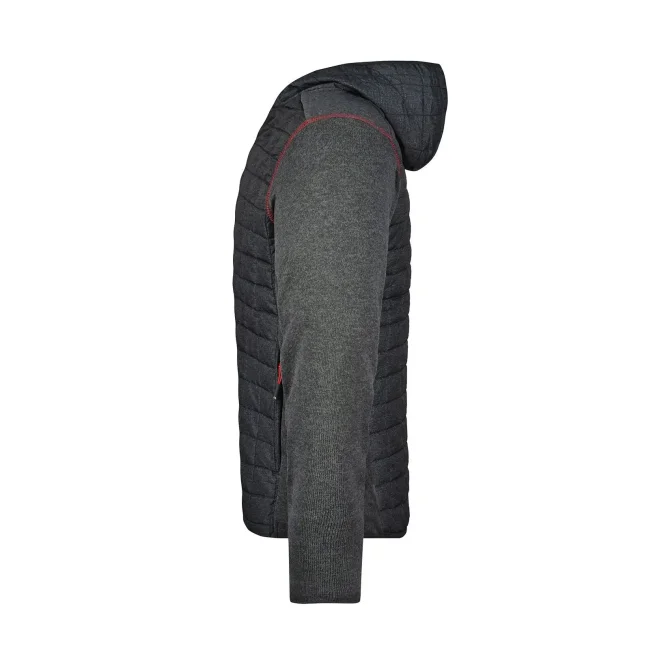 100% poliestere. Giacca lavorata a maglia, easy care, colore melange, tasche con cuciture piatte contrastanti. Cappuccio aggiustabile, cerniera nascosta, 2 tasche laterali con cerniera, 2 tasche interne.