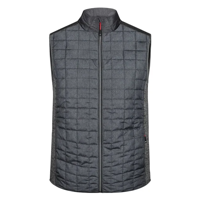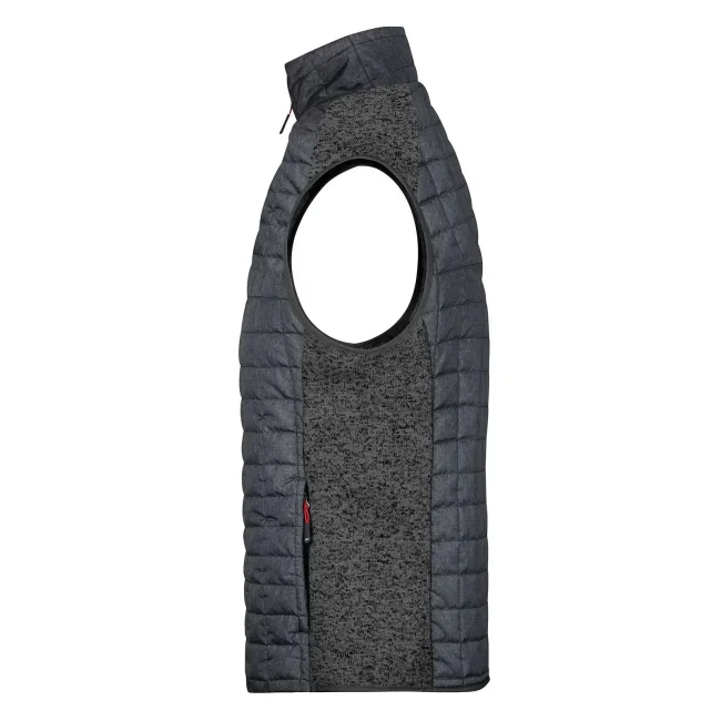 100% poliestere. Rivestimento: 100% poliammide. Imbottitura: 100% poliestere. Gilet in pile mélange, morbida e calda, easy-care, trapuntato su fronte, retro e colletto, cuciture piatte a contrasto sulle spalle, 2 tasche laterali con zip, 2 tasche interne.