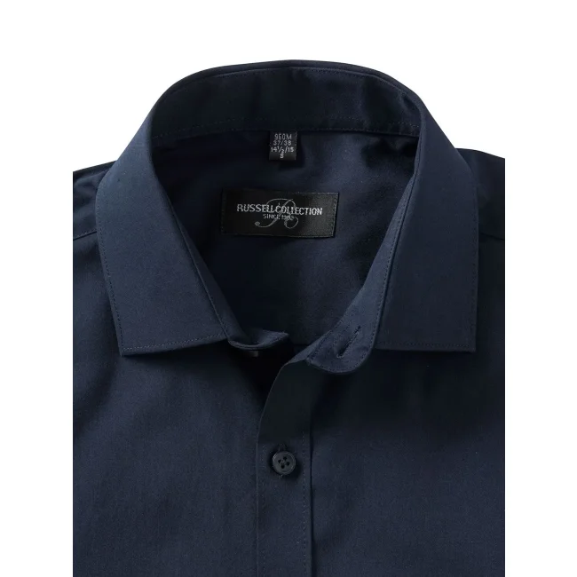 75% cotone 25% elastomultiestere (fibra di lycra® t400®). Camicia elasticizzata con pince sul retro, pattina stretta e polsini squadrati, controllo dell'umidità. (Col. 30: 125 g/m²)