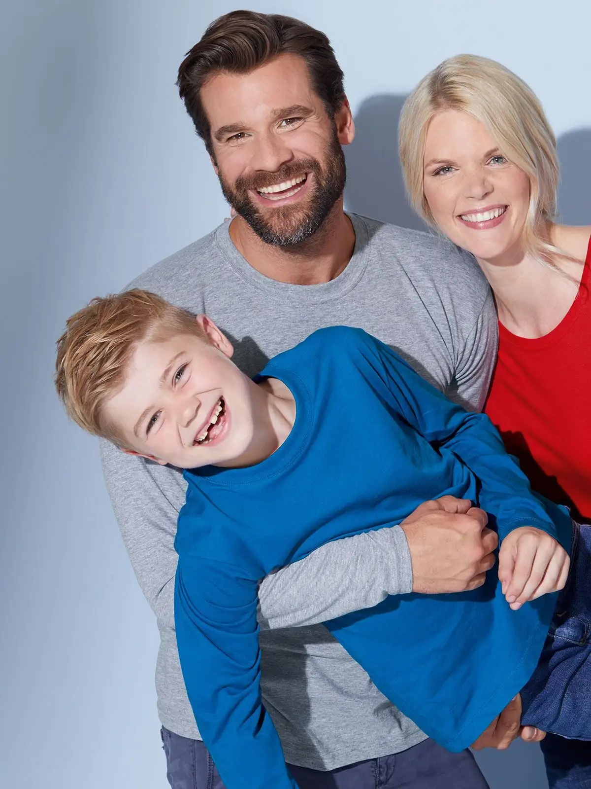100% cotone. T-shirt manica lunga in single jersey, taglio diritto senza cuciture laterali, 1 x 1 girocollo e necktape a costine, Scollo tondo con elastan, cucitura laterale e cuciture a doppio filo sul collo Tessuto esterno (150 g/m²), Manica lunga.