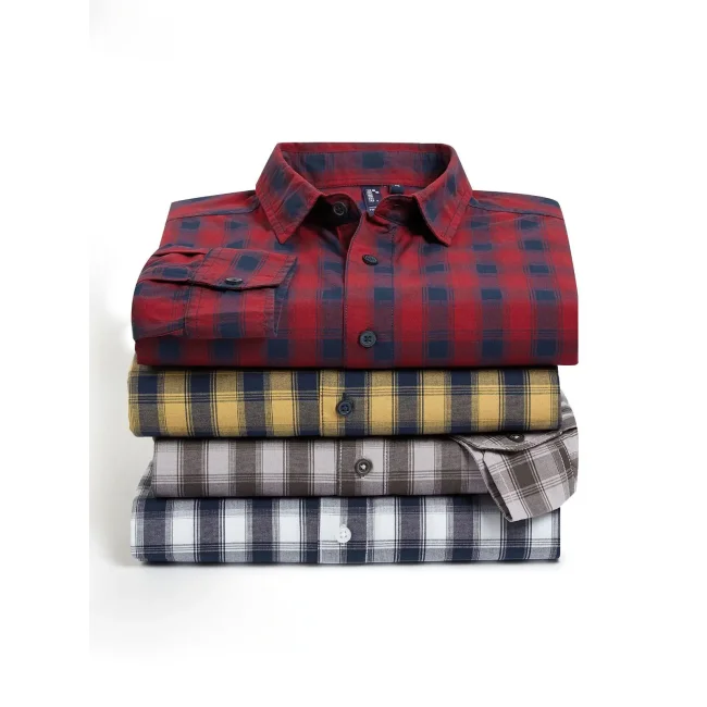 100% cotone. Camicia uomo a manica lunga con disegno a quadri in contrasto multi-colore. Polsino con bottone semplice e pannello protettivo della manica, creato per rimboccarla e chiuderla con una linguetta abbottonabile sull'avambraccio.