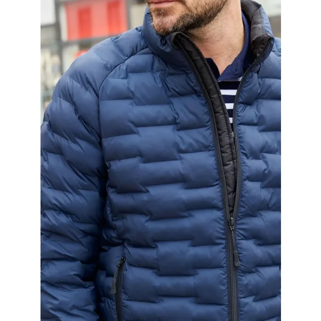 100% poliestere riciclato. Imbottitura: 100% pol. Giacca leggera trapuntata, tessuto a 2 strati con imbottitura DuPont Sorona, taglio sportivo con maniche raglan. colletto alto, 2 tasche laterali con zip, 2 tasche interne, zip frontale con protezione per il mento, cordino elastico regolatore sull'orlo, zip: YKK.