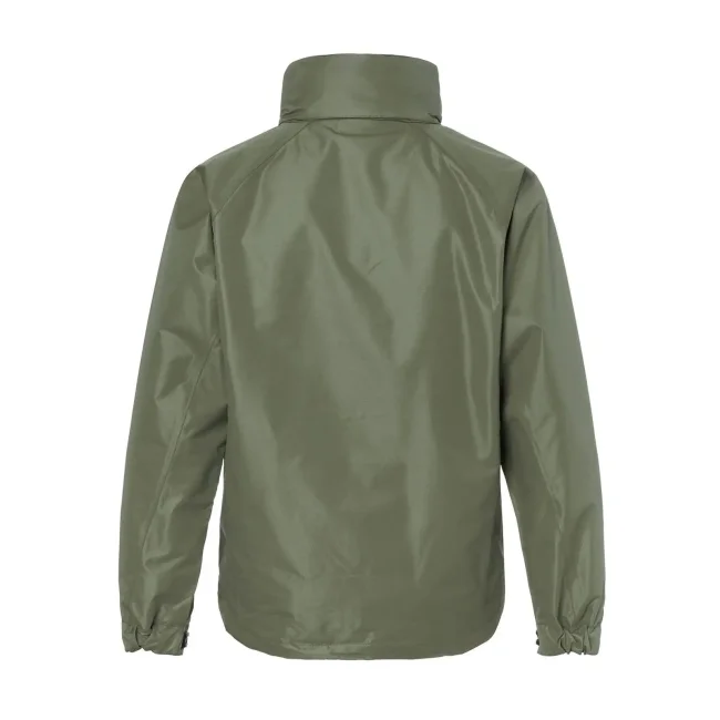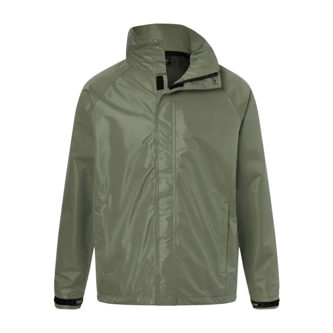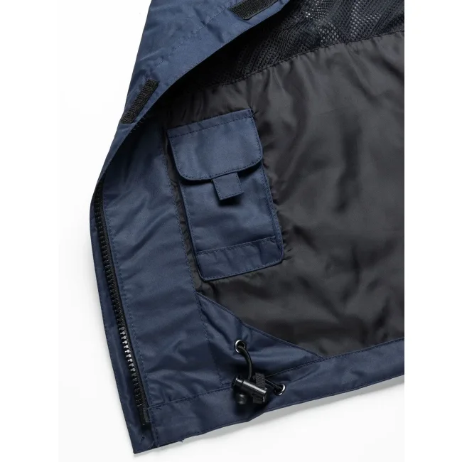 100% poliestere. Giacca funzionale dal tessuto antivento traspirante e idrorepellente, membrana TPU, cuciture sigillate, colletto con cappuccio integrato, due tasche nascoste con cerniera, tasca interna, cordino elastico con stopper su cappuccio e vita.