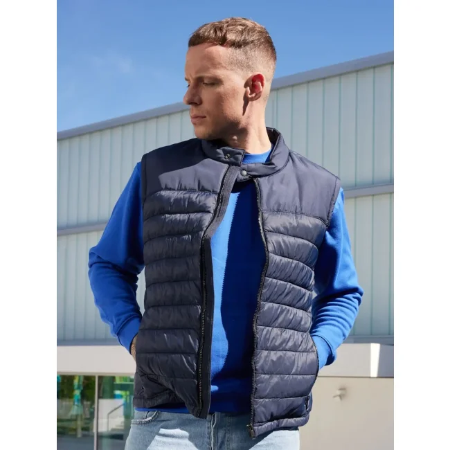 100% poliestere (riciclato). Pratico materiale in poliestere riciclato, idrorepellente e antimacchia grazie al BIONIC-FINISH®ECO, imbottitura antifreddo sorona®AURA, non trapuntato nella parte anteriore e posteriore per una facile stampa o ricamo, zip a tutta lunghezza, collo alto con bottone a pressione, 2 tasche laterali con zip, 1 tasca interna con zip, zip: YKK
