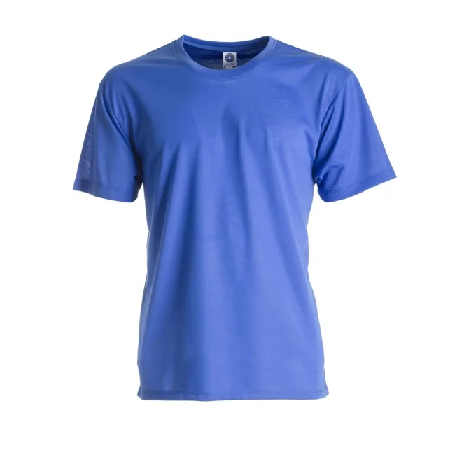 100% poliestere single jersey. T-shirt manica corta set-in, girocollo, traspirante, morbida al tatto, protegge dagli UV, adatta alla sublimazione, struttura con busto tubolare.