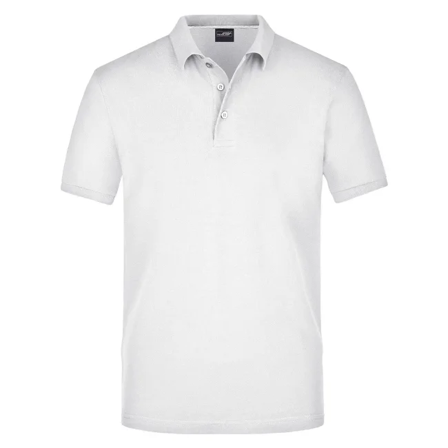 100% cotone. Polo shirt qualità premium Tessuto Pique di alta qualità, molto fine ma allo stesso tempo consistente, Colletto e polsini della polo smacchinati, Bottoni color titanio, spacchi laterali, 3 bottoni Tessuto esterno (180 g/m²). Manica corta, Spacchetti laterali.