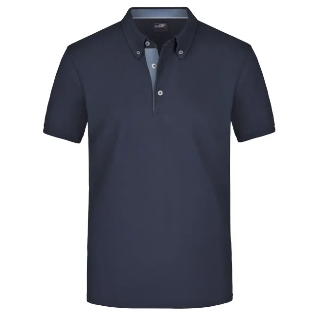 100% cotone. Polo con colletto abbottonato, piqué classico, pregiato, cotone pettinato ring-spun, colletto abbottonato pronto, rifinitura sul colletto, all'interno dell'abbottonatura e sugli spacchi laterali, 4 bottoni in colore a contrasto, mezzaluna tono su tono.