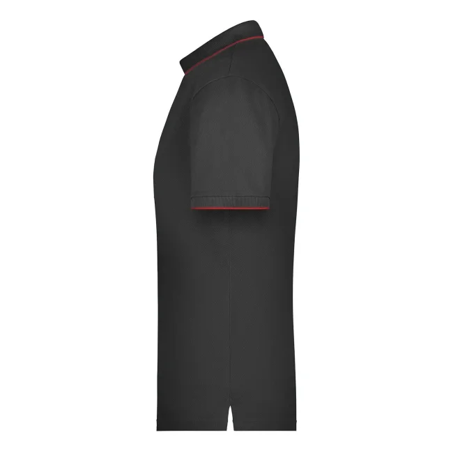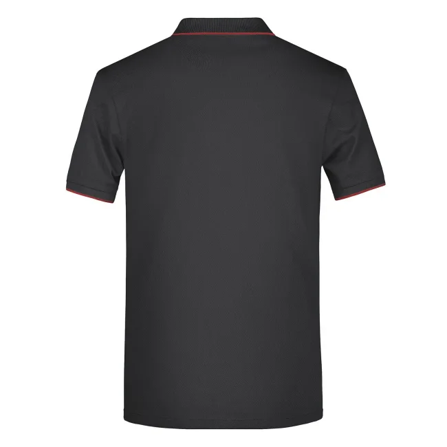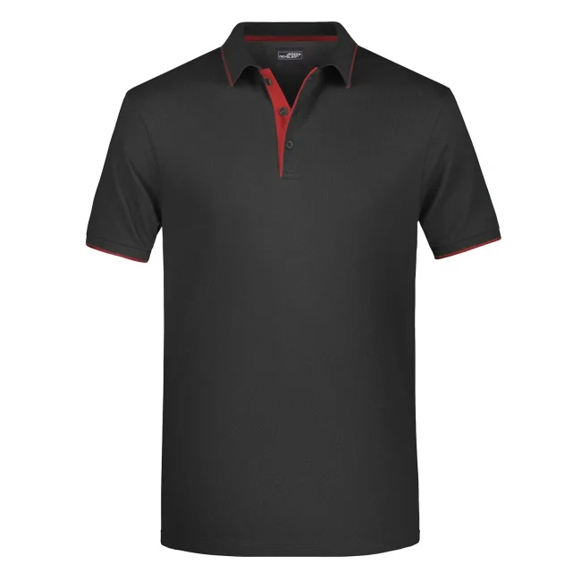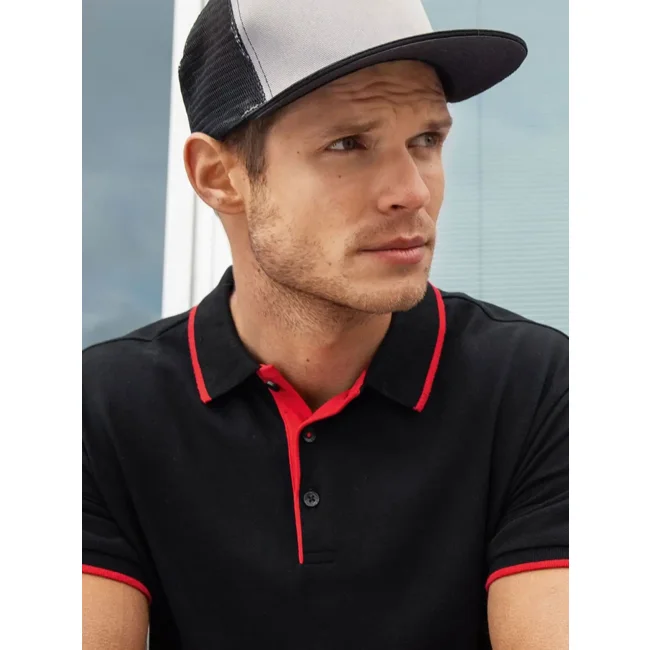 100% cotone pettinato ring-spun. Polo da uomo in tessuto piqué di alta qualità, fettuccia nel collo e nelle maniche a costine, righe a contrasto sul collo, colletto e abbottonatura interna con colori a contrasto, polsini tono su tono, spacchetti laterali, 3 bottoni.