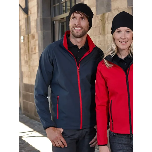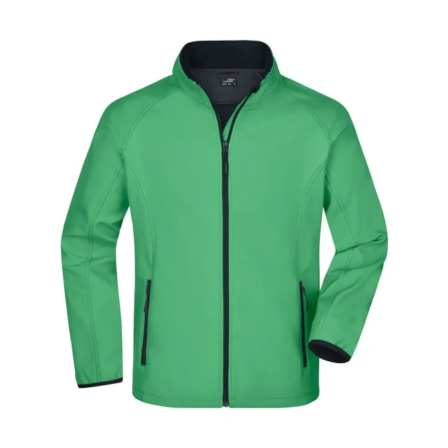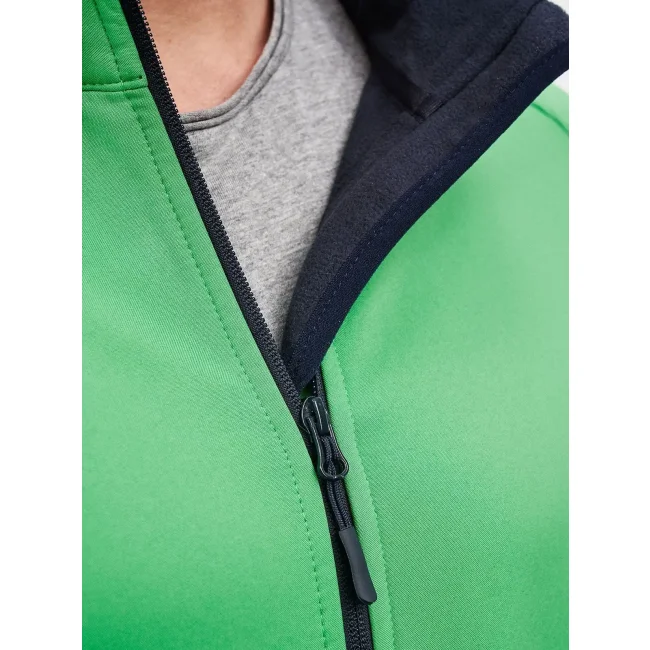 100% poliestere. Giacca in softshell a due strati, idrorepellente, antivento e traspirante. Lato interno in morbido micropile, zip frontale lunga con protezione per il mento. 2 tasche laterali con zip, 2 tasche interne, polsini elastici.