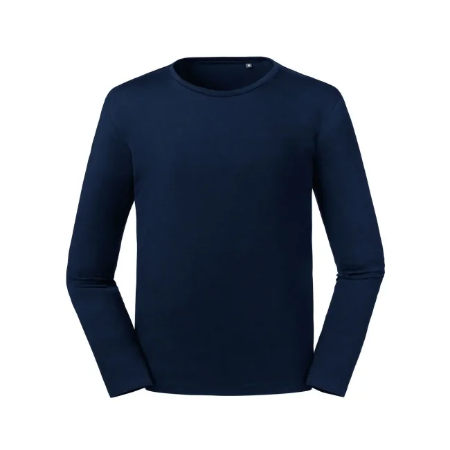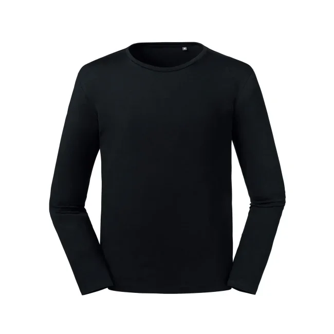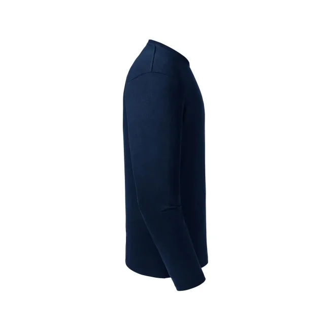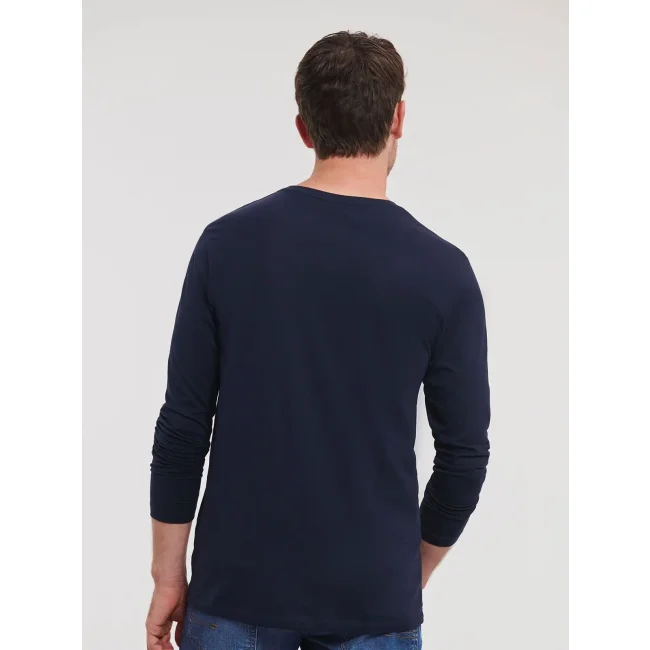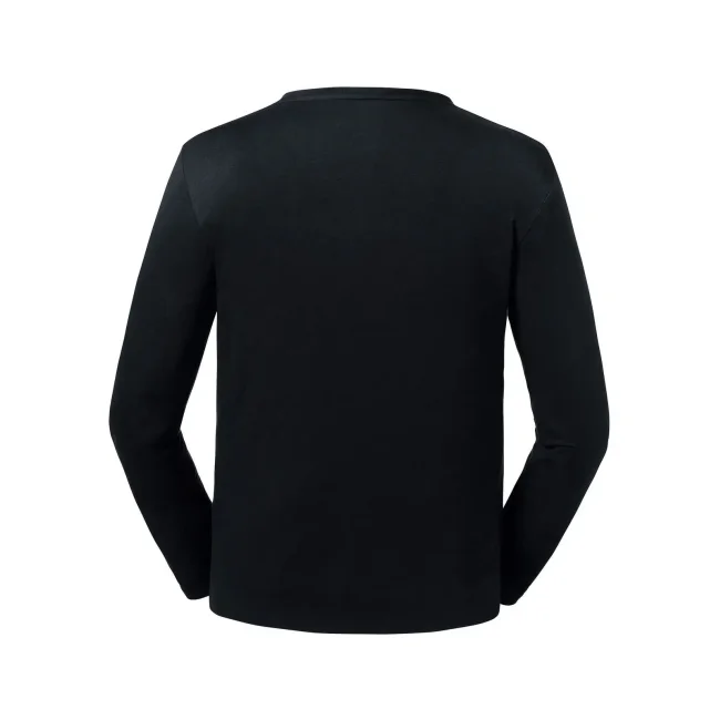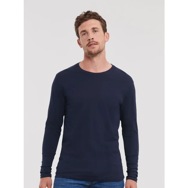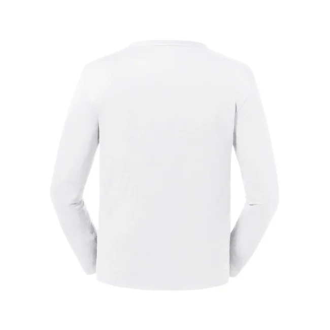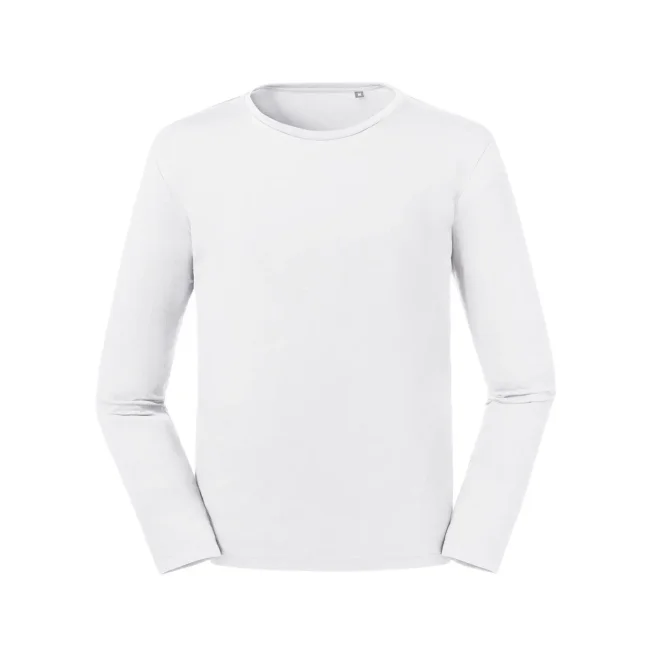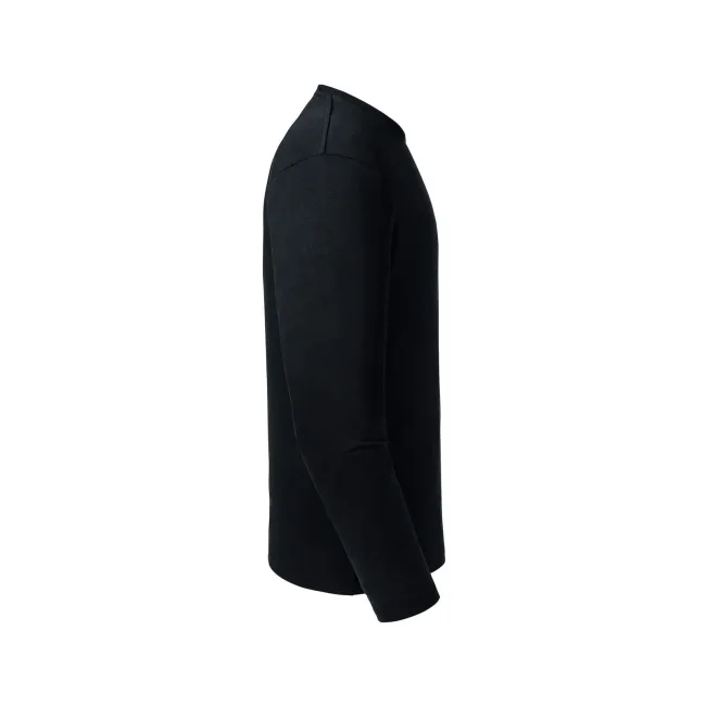 100% cotone organico pettinato ring spun. T-shirt manica lunga girocollo con cuciture laterali per un taglio attillato moderno e colletto basso in LYCRA® , nastro di rinforzo da spalla a spalla su misura per una maggiore stabilità, superficie liscia per un migliore risultato di stampa, piccola etichetta senza logo sul collo.