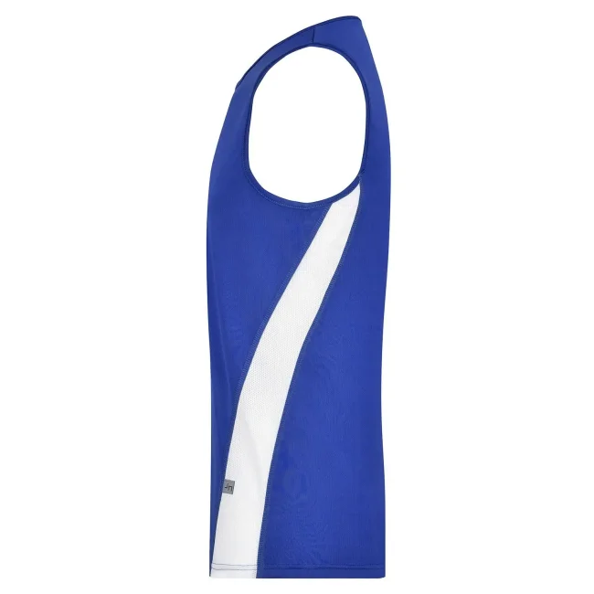 100% poliestere. Canottiera da corsa, Confortevole da indossare, regola l'umidità del corpo, traspirante e ad asciugatura rapida, Inserti in rete a contrasto, stampa catarifrangente sul retro, collo rotondo. Tessuto esterno (140 g/m²).