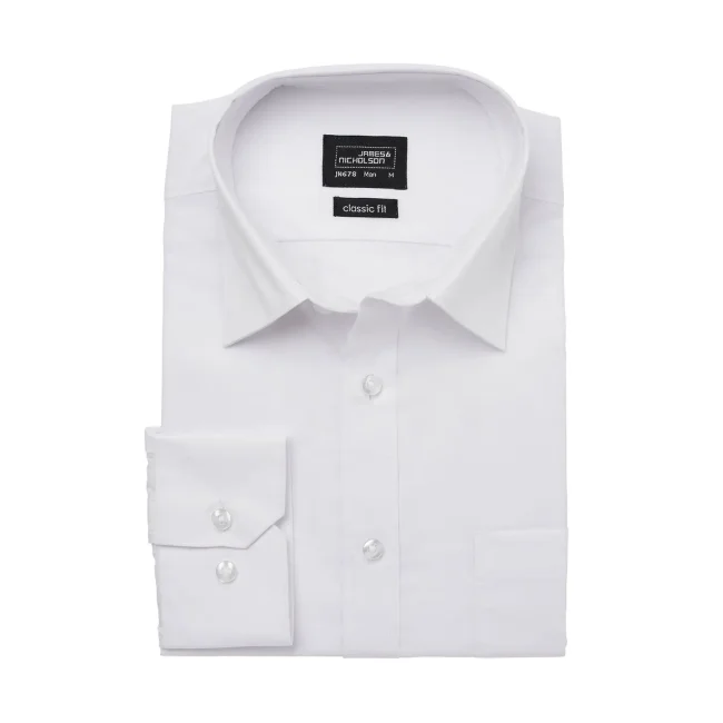 65% poliestere, 35% cotone. Camicia poplin easy care con orlo arrotondato, bottoni, taglio classico leggermente avvitato e taschino lato cuore.