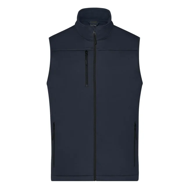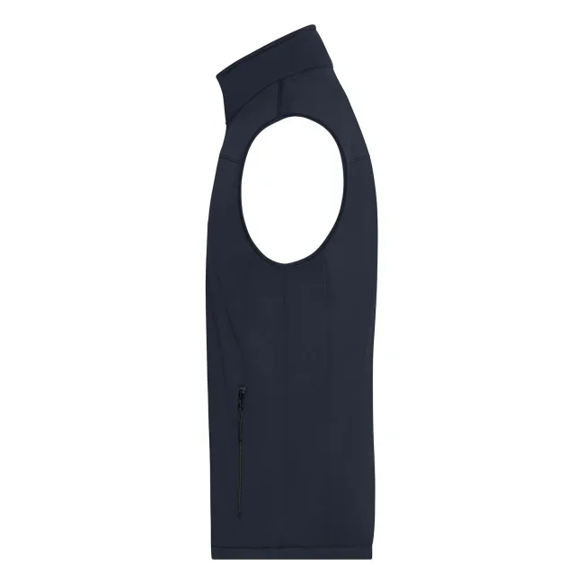 100% poliestere riciclato. Gilet softshell sportivo, a 3 strati con membrana TPU, antivento e idrorepellente (5,000mm colonne), traspirante e permeabile al vapore acqueo, interno in pile e rivestimento in mesh sul davanti, colletto alto, 2 tasche laterali e un taschino sul petto con zip YKK.