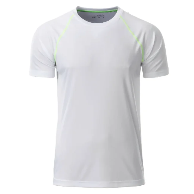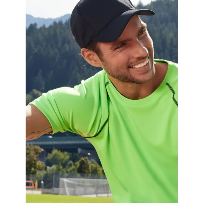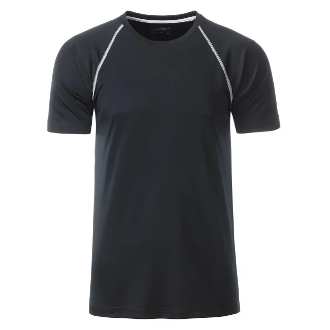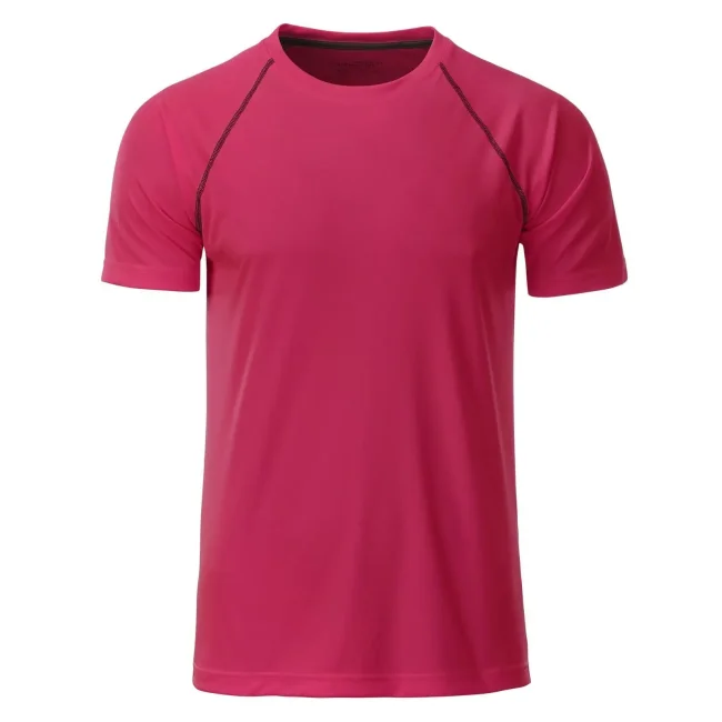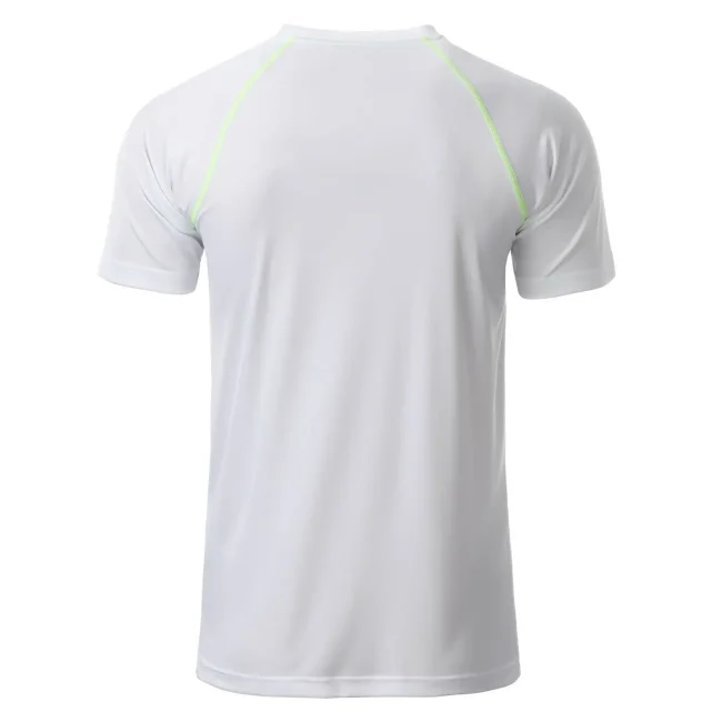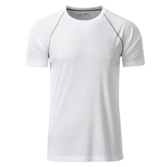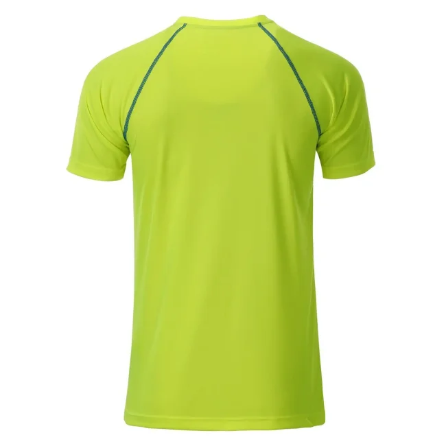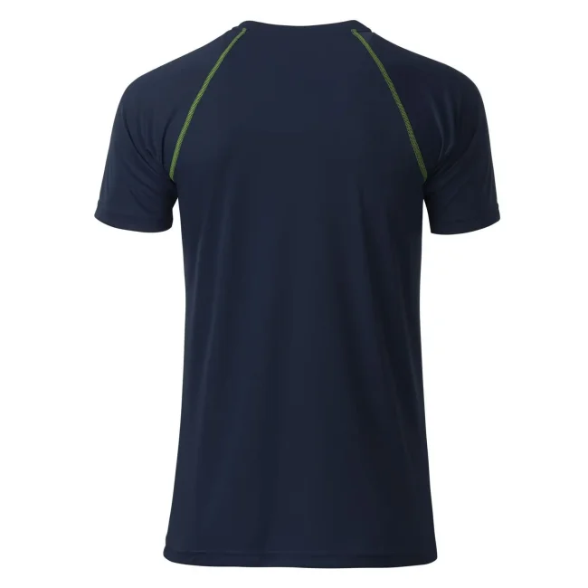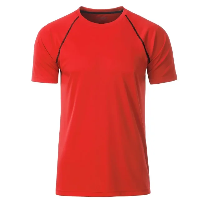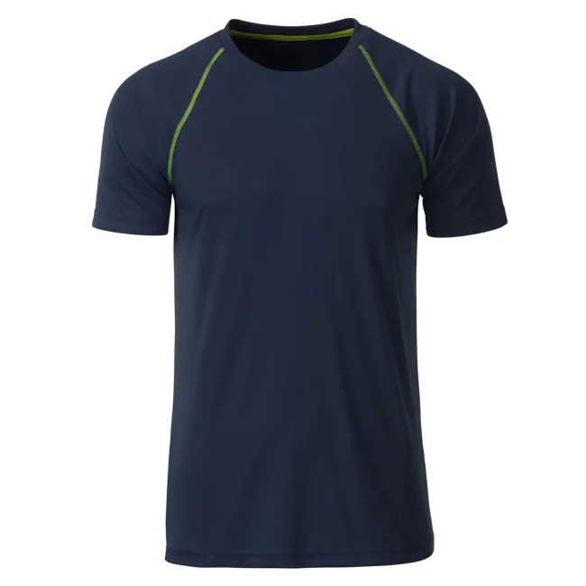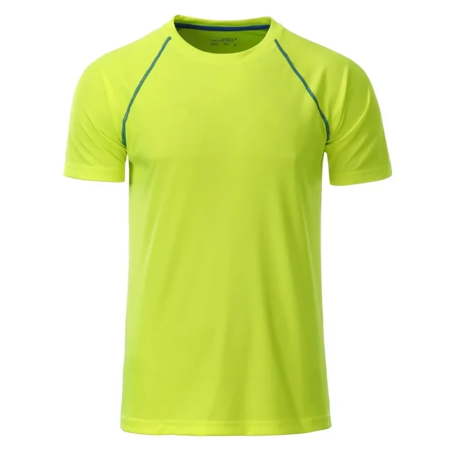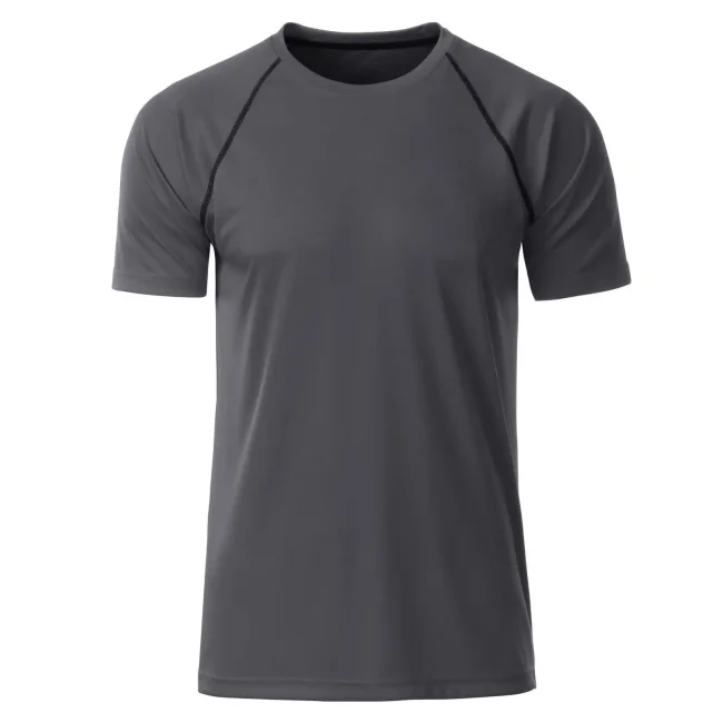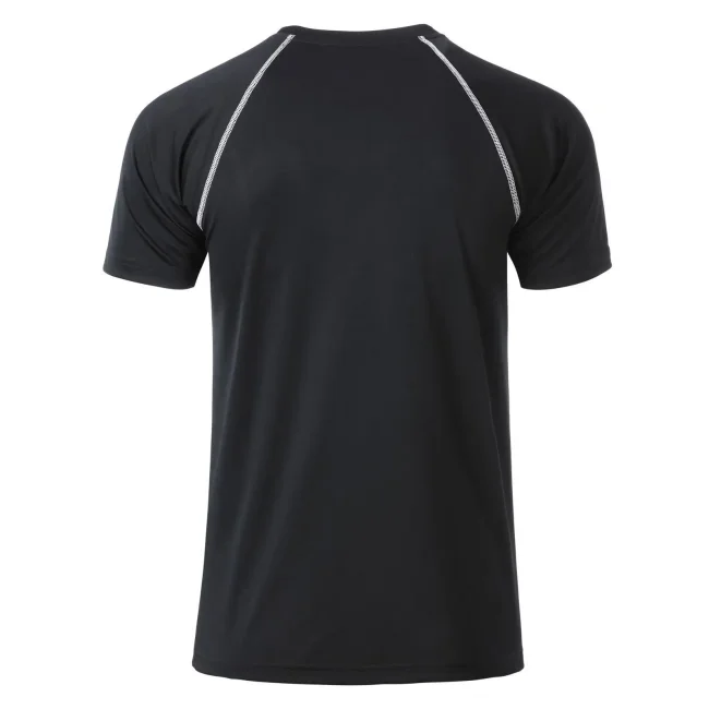 100% poliestere. T shirt uomo per fitness e sport Transpirante e con regolazione umidità, Asciugatura rapida, leggera e confortevole, Maniche raglan, collo rotondo, Contrasto cuciture piatte sul davanti e sul retro. Tessuto esterno (130 g/m²).