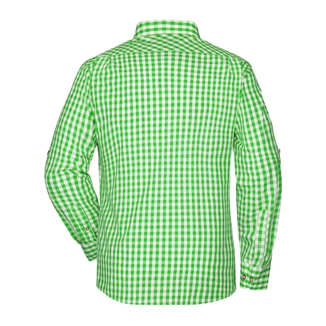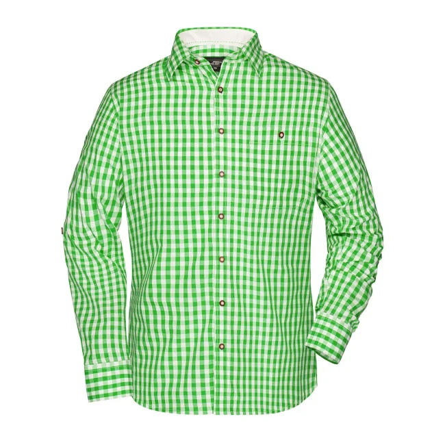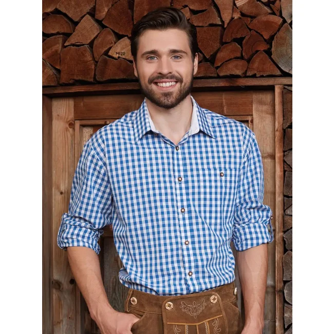 100% cotone. Camicetta donna e camicia uomo da classico costume tradizionale Pregiata qualità di popeline, facile da stirare con finitura easy-care, Manica rimboccabile con linguetta e bottone. Orlo arrotondato, Bottoni da costume tradizionale a imitazione del corno. Forma classica, leggermente sciancrata, tasca pettorale, 2 pieghe sulla schiena. Manica lunga, policromo, pence sulla schiena.