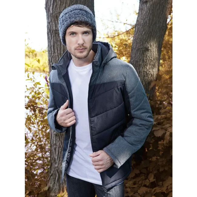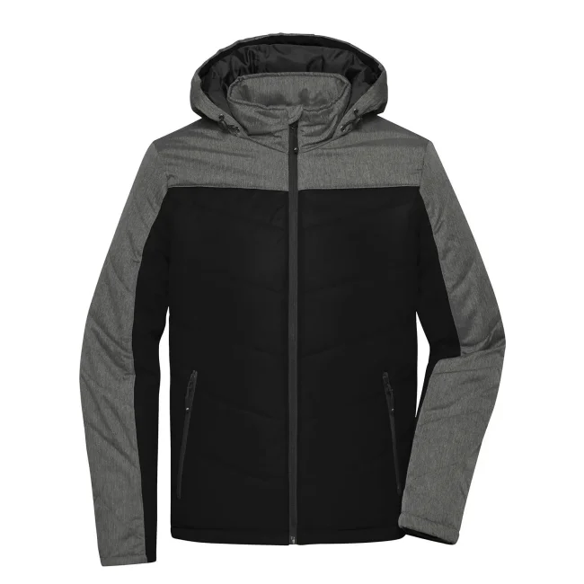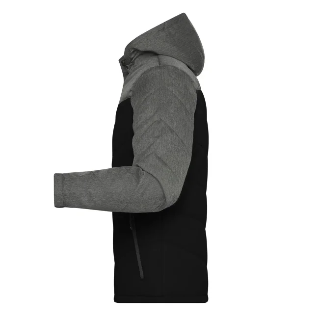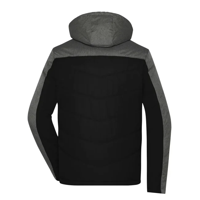 100% poliestere. Giacca invernale uomo, imbottita, antivento e idrorepellente (colonna d'acqua 1,500 mm), cuciture nei pannelli, con colletto sostenuto e con cappuccio aggiustabile, polsini delle maniche elasticizzati, tasche laterali chiuse con cerniera, 1 tasca interna, cerniera decorativa sul retro.