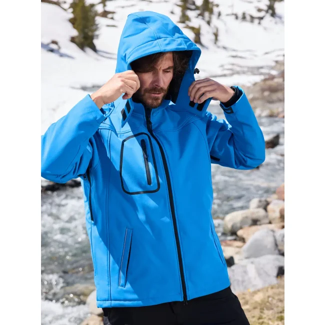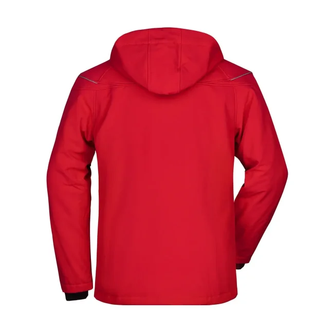 95% cotone, 5% elastane. Giacca invernale in softshell,Tessuto funzionale a 3 strati con membrana TPU , Idrorepellente e antivento (5.000 mm colonna d'acqua), traspirante e permeabile al vapore, Le cuciture non sono chiuse, Cappuccio staccabile, imbottito e foderato, colletto in caldo pile, Cerniere sotto le maniche per un'ulteriore ventilazione, protezione antivento totale , Filetti a costa riflettenti sulle spalle e sulle tasche anteriori, 2 tasche anteriori, 1 taschino interno e tasca portacellulare, Cerniera bidirezionale, Cordino elastico con stopper in vita e sul cappuccio. Cerniera per ricamo sulla schiena, Fodera: 100% poliestere, Imbottitura: 100% poliestere, Raglan, Colonna d'acqua 5.000 mm, imbottito, antivento e idrofugo