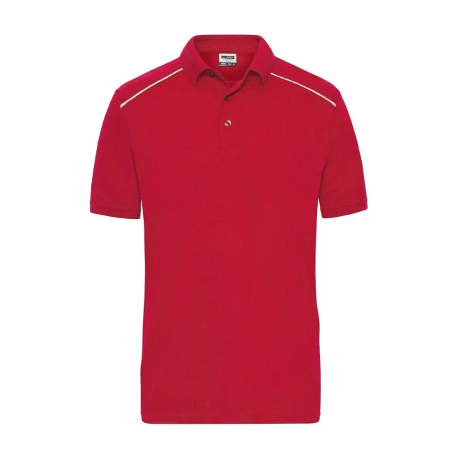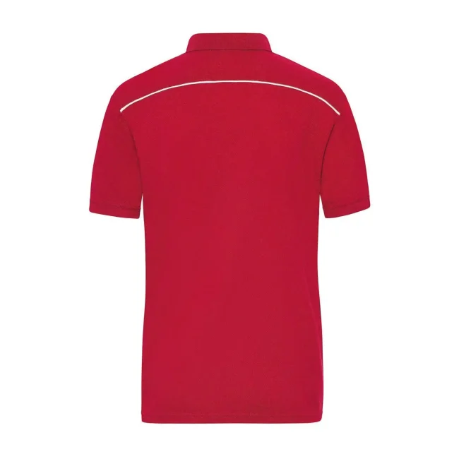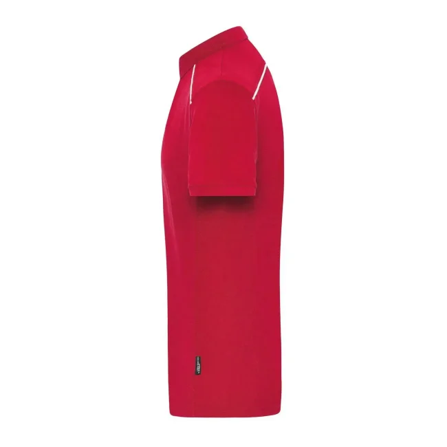 50% cotone, 50% poliestere. Polo da lavoro in tessuto misto cotone organico ring-spun e poliestere per un perfetto mantenimento della forma e resistenza al lavaggio, colletto polo e bordini manica lavorati a maglia, chiusura a 3 bottoni, inserti contrastanti sul davanti e sul retro, lavabile a 60° C, ideale per asciugatura in asciugatrice.