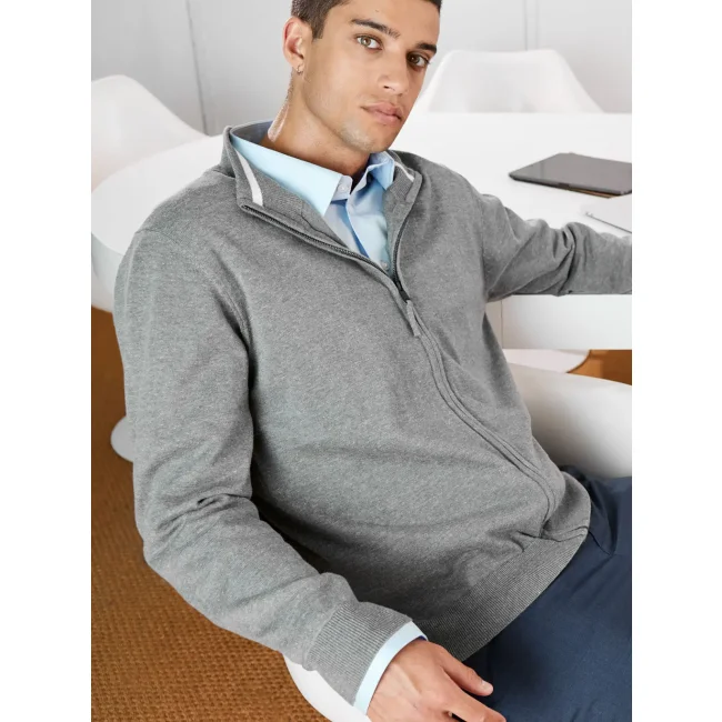 100% cotone. Cardigan da uomo, collo alto, zip a tutta lunghezza, lavabile in lavatrice, zip: YKK