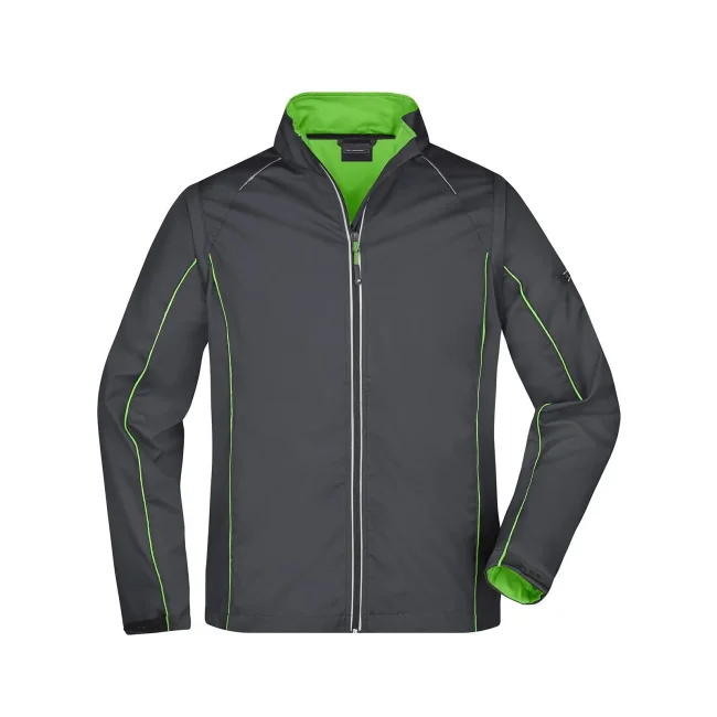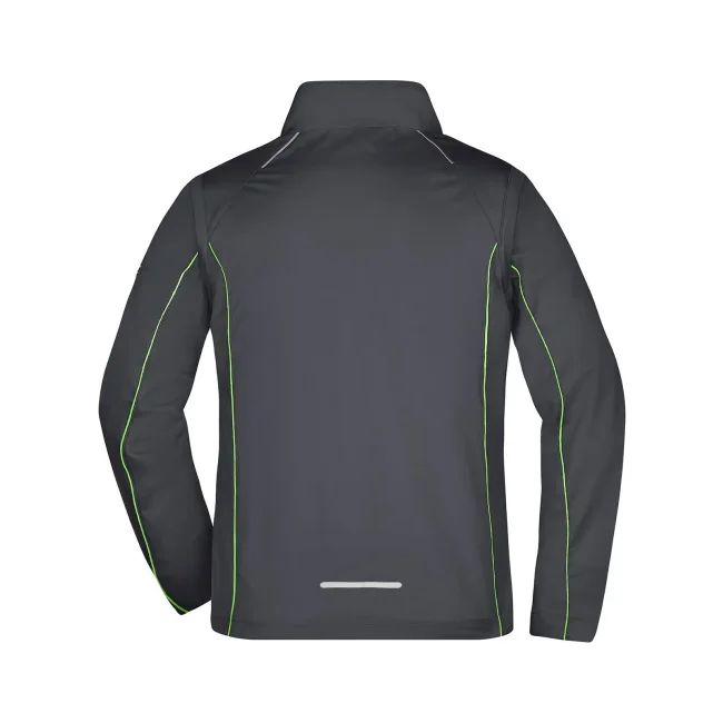 100% poliestere. Giacca in softshell con tessuto a 3 strati, membrana TPU, antivento e idrorepellente (colonna d'acqua 5.000 mm), traspirante e permeabile al vapore. Collo alto, piping a contrasto sul davanti, sul retro e sulle maniche. Cerniera anteriore nascosta, dettagli riflettenti su spalle, retro e maniche. due tasche laterali con zip, una tasca interna, tasca sulla manica con zip riflettente. Maniche staccabili.