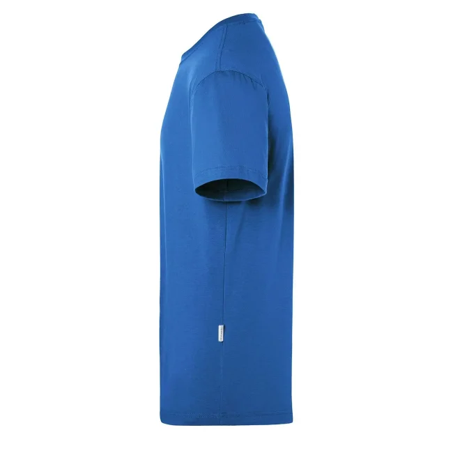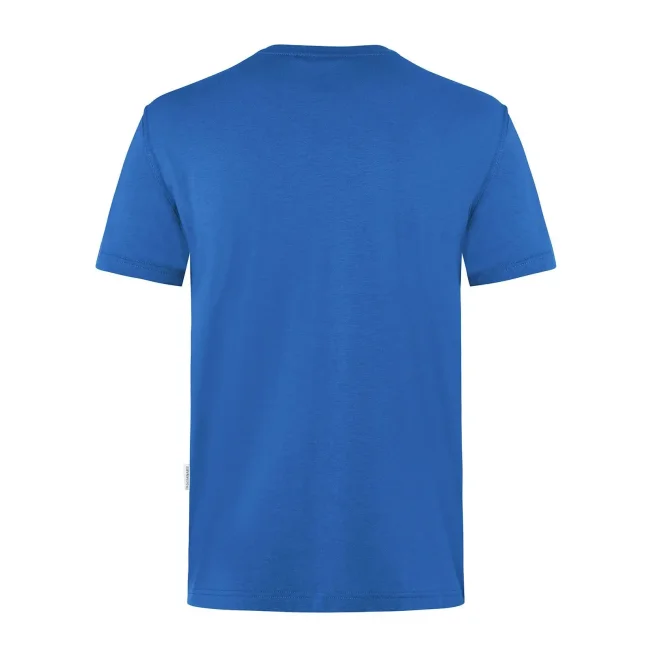 51% poliestere riciclato, 46% cotone, 3% elastan, 170 g/m², single-jersey. T-shirt da uomo in materiale resistente e sostenibile, easy-care. Taglio dritto, girocollo con elastan, banda di rinforzo al collo. Prodotto certificato GRS, Green Button e Oeko-Tex.